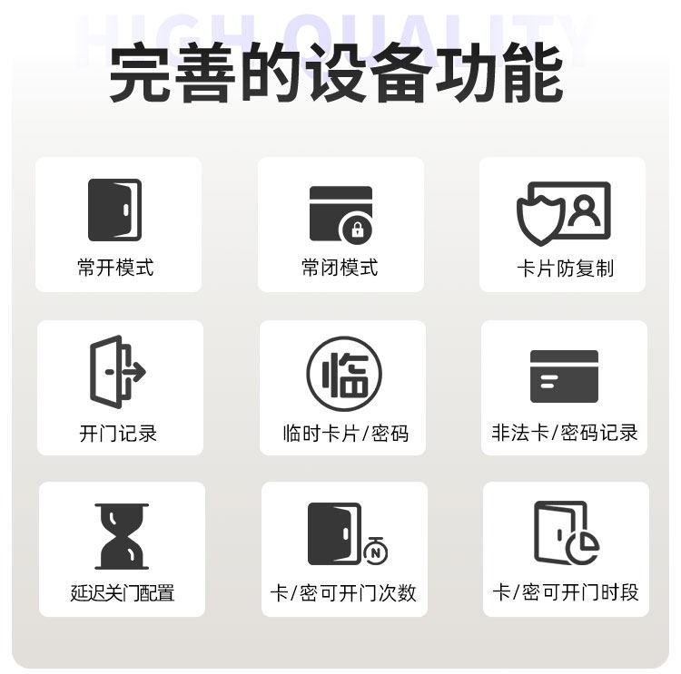 迪庆这款智能门锁提供室内门锁和防盗门锁两种选择,其中室内门锁尺寸为 2806521mm,适配 5050 锁体;防盗门锁尺寸为 3657021mm,适配 6068 锁体,可满足不同场景的安装需求。它采用铝合金一体成型搭配钢化玻璃面板打造,兼具坚固耐用的品质与简洁美观的视觉效果。门锁支持蓝牙无线通讯,解锁方式丰富多样,密码、卡片、蓝牙、钥匙四种方式随心选择,满足不同使用习惯与应急需求。其工作温度范围为 - 20~70℃,能适应多数地区的气候条件,采用碱性电池供电,安装更换便捷,是兼具安全性与实用性的门锁选择。